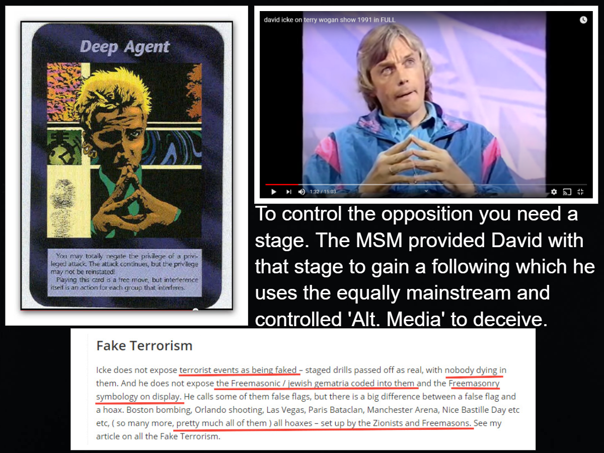 David is very clearly an agent and a freemason and this has been exposed many, many times before by many, many people. How would a lower league footballer who played 2 seasons for Hereford United get a coaching job in Saudia Arabia? How would they know who he is? That is an MI6 job. Then ends up at the BBC and The Green Party and then selling out world tours ‘exposing the illuminati’. If you understand how the system works then you know exactly what David is and why – if you don’t, you’ve been reading too much David Icke…