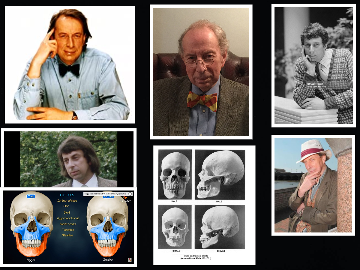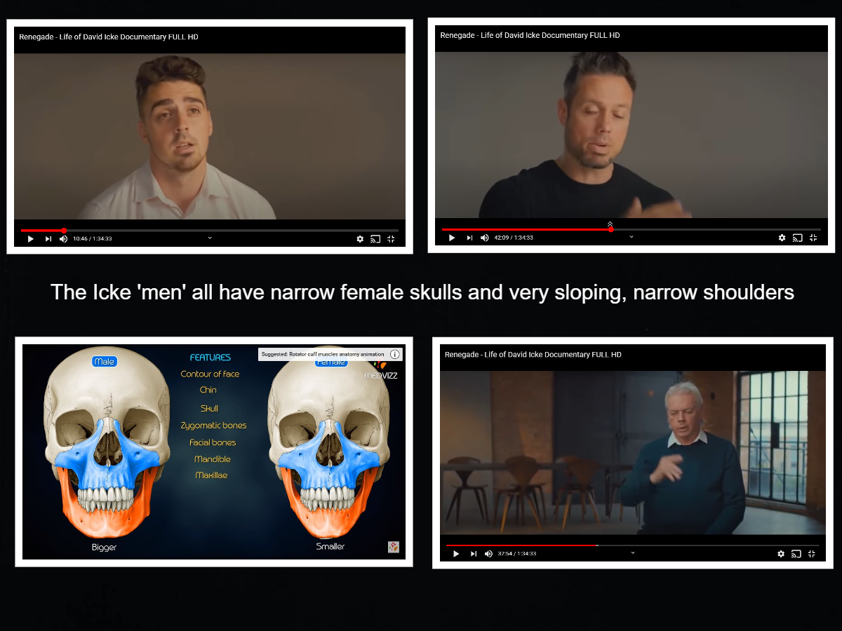 David has been a well-known transgender in the truth community for a long time – not to me (I only found out about EGIs last year) – and we can clearly see why. The picture above shows David and his sons with very narrow, sloping shoulders and narrow female skulls. If we look at the illustration and compare it to the Ickes’ skulls, then we can clearly identify them as being female.