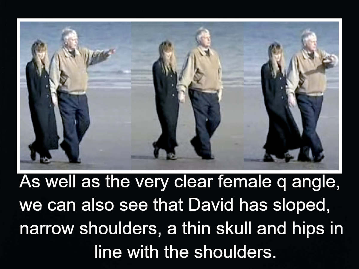 We can also see that David has a female gait and Q Angle, something I have identified on these blogs before with Ian Brown. If you watch videos of him walking you will see him moving around like an old lady because, biologically, that is exactly what he is.