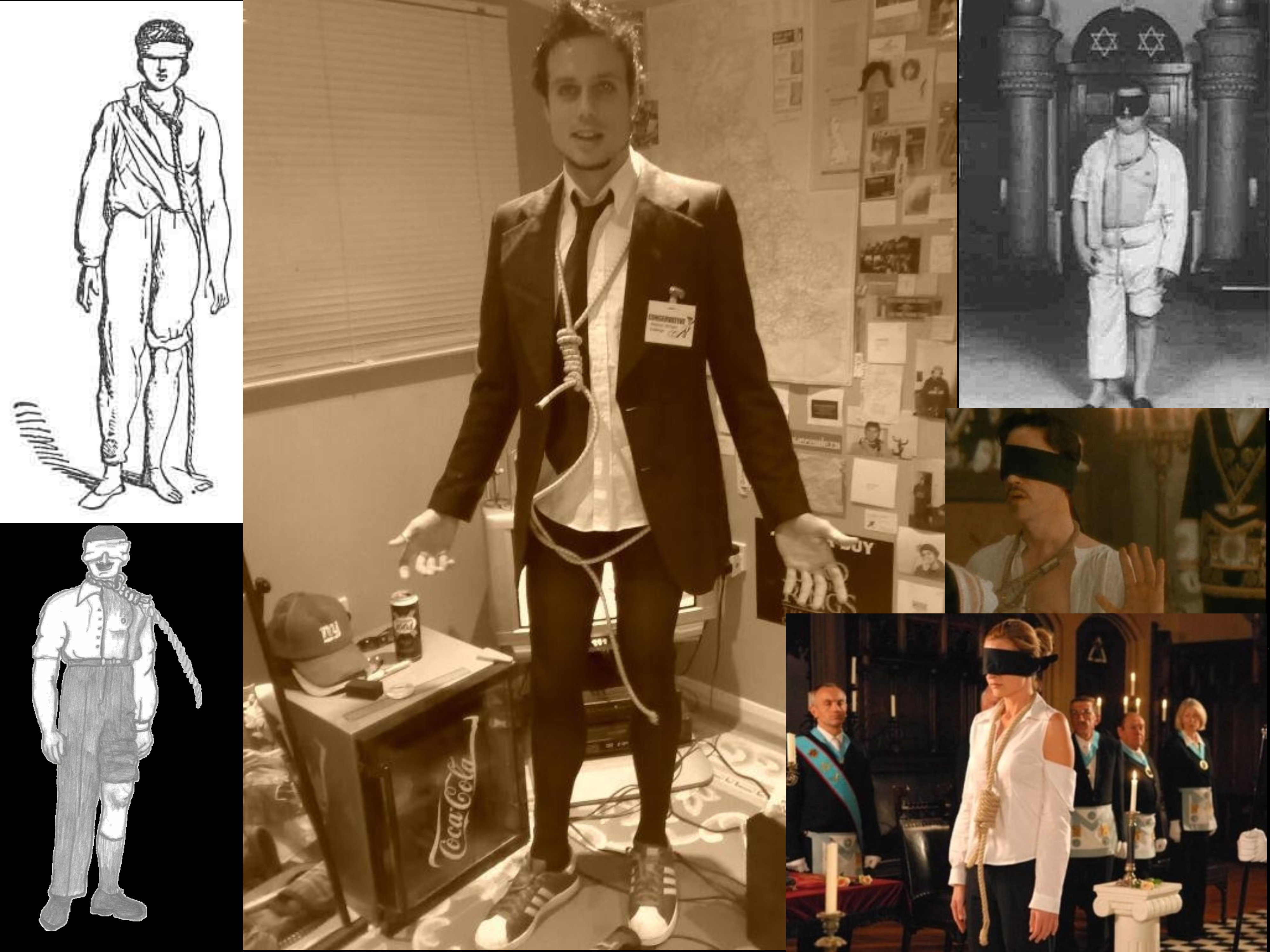Before we look at his ‘son’ Gareth’s EGI credentials, let’s first look at a series of photos that he has posed for that contain very, very overt freemasonic and Luciferian symbolism. Firstly, we can see above that Gareth is showing us that he is an initiated freemason by putting the noose around his neck which is part of freemasonic initiation ritual.