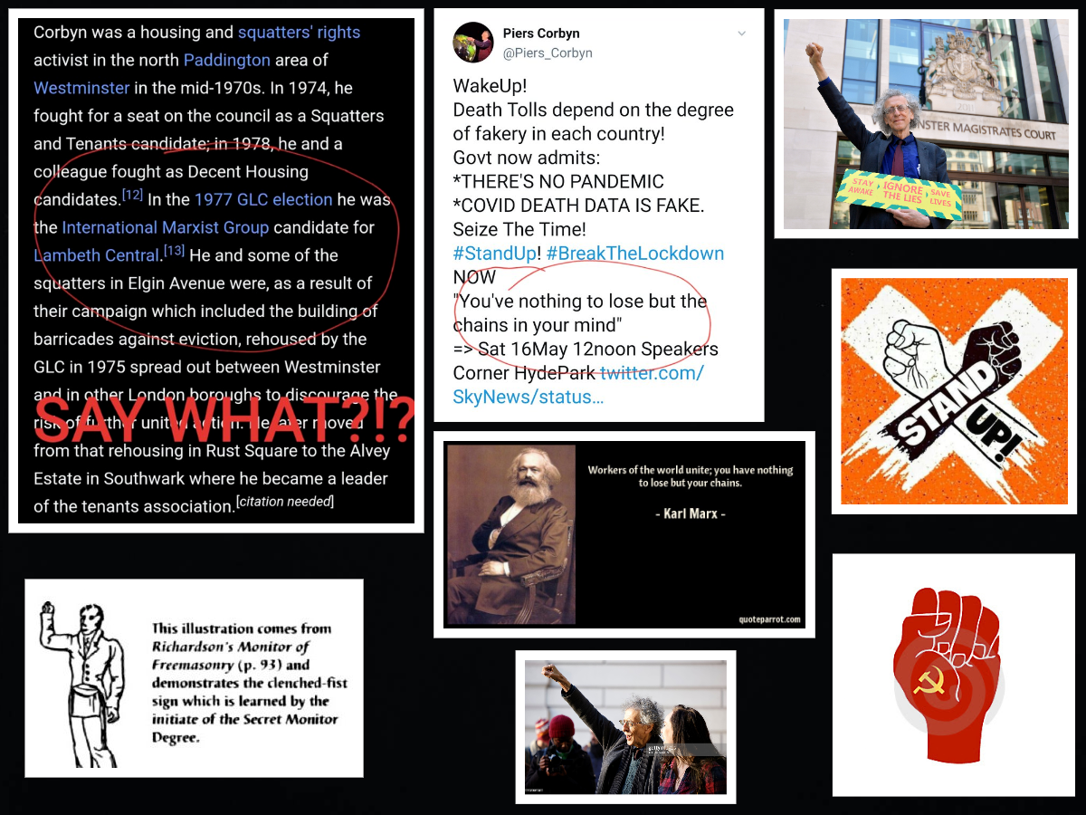 There is also the freemasonic handsigns and the fact that he left £3,300 of donations in the kitty to be returned to donors – freemasonic as you can get – after, according to a founder member of Stand Up, stealing £100,000 of donations that were meant to be used for people who got arrested at demos. The person in question has stated that Corbyn did not use this money for arrests and that after being challenged several times, he pulled this stunt and left to form his own group, Stop New Normal. He has made a career out of asking for money to deceive people with false hope – the wolf in sheep’s clothing of The Fabian Society isn’t ironic.