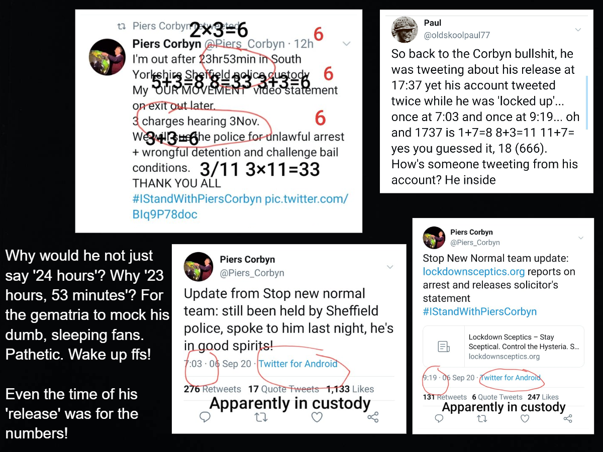 After one of his many fake arrests, Piers made an announcement about his alleged ’23 hours and 53 minutes’ detention at his old friend’s pleasure. He did this at 17:37 and he was that specific in describing the duration of his supposed time in a cell in order to use gematria to code his tweets with 33s and 666s – because he is a freemason. There is no other reason he would do this. He also tweeted twice whilst supposedly in custody and there was a staged video of a police officer approaching him earlier that day showing hidden hand symbolism which I highlighted on the day. Piers also lied in his interview with Sean Argyle – he stated that someone else tweeted the gematria when the tweet clearly says “I’m out…”