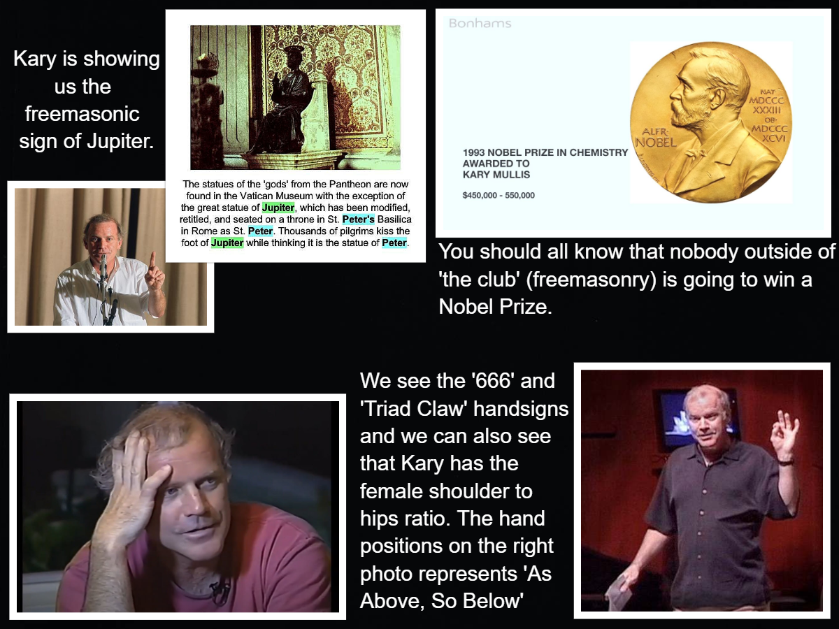 I have spoken about Coleman’s freemasonry before here and also about how he wouldn’t be published in the MSM if he were not controlled before, and we can also see above that he has a female skull with the flat forehead and sloped jaw. We can also see his sloped shoulders when he isn’t holding his props in his chair to make them seem masculine. The same is true of Kary Mullis who, like Coleman, is controlled opposition and a freemason. They simply would not have the profiles they have if they were not. People need to start waking up to this because they are being duped by obvious opposition. How would Kary Mullis win a Nobel Prize if not controlled? People say they know how this system works but are blinded by the need for heroes – there are none.