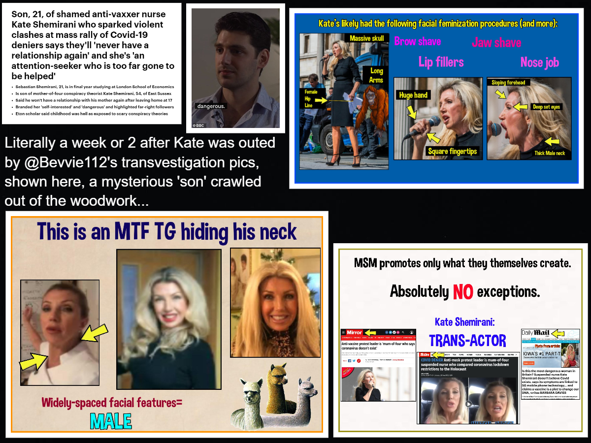 We can also see that ‘she’ is an EGI, one of the most obvious ones, and that she has the MSM coverage that only controlled opposition gets. After Bevvie outed Kate on Twitter, a week or so later a supposed ‘son’ rocks up in the MSM to slag her off and to make the idea of her being transgender laughable – but what’s laughable is how people cannot see through these obvious deceptions.